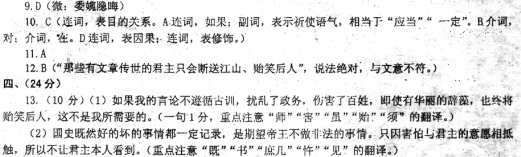 13.把文言文阅读材料中画横线的句子翻译成现代汉语。(10分)