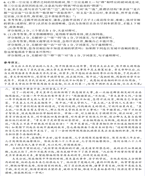9.把文中画横线的句子翻译成现代汉语(10分)